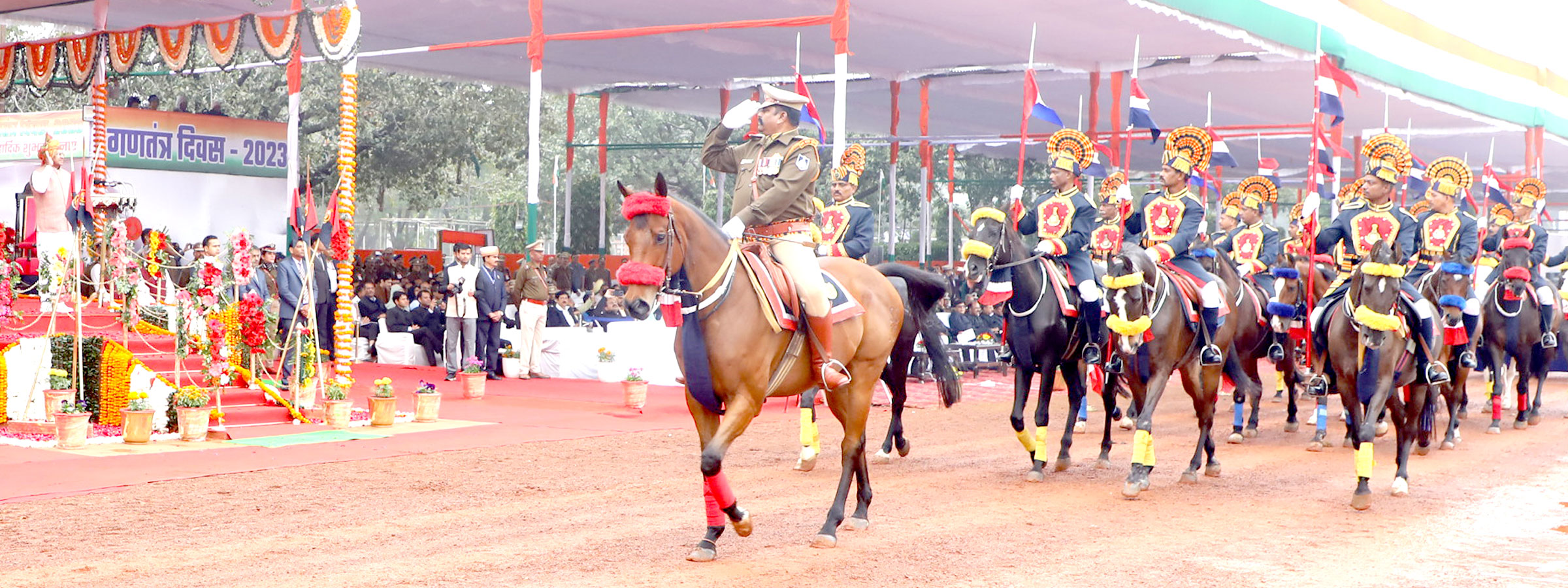 राज्यपाल मंगुभाई पटेल ने 74वें गणतंत्र दिवस के मौके पर भोपाल स्थित लाल परेड मैदान में राज्य स्तरीय कार्यक्रम में राष्ट्रीय ध्वज फहराया और आकर्षक परेड की सलामी ली। लाल परेड ग्राउण्ड में हुई परेड में 19 टुकड़ियाँ शामिल थी।
