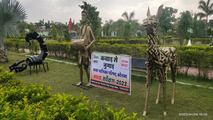नगरपालिका कोतमा द्वारा थ्री आर कबाड़ से कमाल के तहत पार्क में सुन्दर कलाकृतियां बनाई गई हैं।
