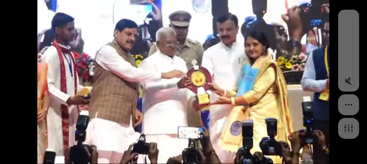 संभागीय मुख्यालय शहडोल के शासकीय एम.एल.बी. उच्चतर माध्यमिक विद्यालय शहडोल में पदस्थ श्रीमती अंजना द्विवेदी विज्ञान विषय की शिक्षिका को आज भापोल में आयोजित राज्य स्तरीय शिक्षक सम्मान समारोह में माननीय राज्यपाल महोदय मंगुभाई पटेल एवं प्रदेश के मुख्यमंत्री डॉ. मोहन यादव द्वारा सम्मानित किया गया।