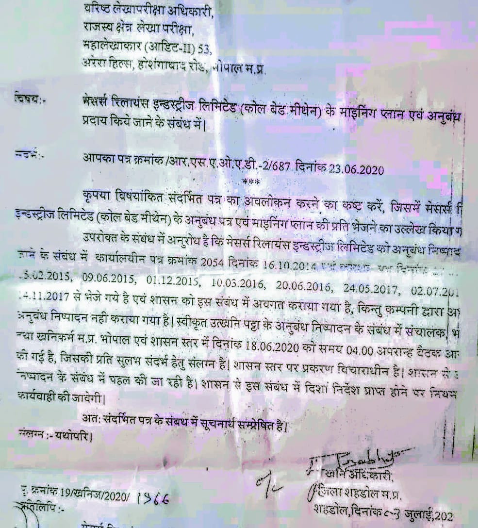 स्मरणीय है की शहडोल, मध्य प्रदेश का भारत के संविधान की पांचवी अनुसूची में अनुसूचित एक आदिवासी बहुल क्षेत्र है, जो प्राकृतिक संसाधनों से समृद्ध है। यहां कोयला और गैस जैसे खनिज संसाधनों का दोहन लंबे समय से विवादों में रहा है। रिलायंस इंडस्ट्रीज पर आरोप है कि उसने खनिज विभाग से उचित विधिक अनुबंध अनुमति के बिना गैस उत्पादन 2009 में शुरू किया, जिससे न केवल अनुबंध की स्टांप ड्यूटी चुकता नहीं किए जाने के कारण करीब 1000 करोड रुपए का सरकारी राजस्व को नुकसान पहुंचा, वैधानिक अनुबंध नहीं होने से होने वाली किसी भी दुर्घटना के लिए रिलायंस इंडस्ट्रीज के नियोक्ता की कोई जिम्मेदारी सुनिश्चित नहीं होती बल्कि आउटसोर्सिंग से जुड़े ठेकेदार व कर्मचारी पर यह ठीका फोड़ दिया जाता. इस प्रकार के अव्वैधानिक तरीके से उद्योग किए जाने के कारण मनमानी जगह में मनमानी तरीके से गैस का उत्पादन तानाशाही पूर्ण तरीके से किया जाता है क्योंकि शासन के संरक्षण के कारण की मूक सहमति होने के कारण बल्कि स्थानीय पर्यावरण और आदिवासी समुदायों की आजीविका भी प्रभावित हुई।