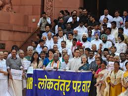 नयी दिल्ली: 12 अगस्त (भाषा) बिहार में निर्वाचन आयोग द्वारा की जा रही मतदाता सूची पुनरीक्षण की कवायद के खिलाफ मंगलवार को विपक्षी गठबंधन ‘इंडिया’ (इंडियन नेशनल डेवलपमेंटल इन्क्लूसिव अलायंस) के घटक दलों के कई सांसदों ने संसद भवन परिसर में प्रदर्शन किया।