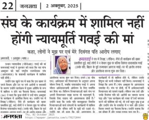 इसलिए शंघ के कार्यक्रम में एक बौद्ध दलित महिला जो अंबेडकरवादी हैं और चीफ जस्टिस ऑफ इंडिया गवई मां है उन्हें भी जस्न में शामिल होने का निमंत्रण नुमा अपवाह सामने आई क्योंकि गांधी, गोंडसे के अलावा हाफ पेंट से फुल पैंट तक प्रगति करने वाले भागवत जी चाहते थे की प्रगतिशील मंच में बौद्ध दलित महिला भी शामिल हो ताकि रंग मंच 100 वर्ष के जश्न जैसा दिखाई दे लेकिन इस मां ने अपनी जमीर को उम्र के चौथे पड़ाव में जिंदा किया और जश्ने 100 वर्ष में शामिल होने की खबर को खारिज कर दिया रावण के लिए यह और रोमांचकारी था इसलिए भी वह अपने दरबारी इंद्र को मेघ वर्षा कर इस पानी में डूब गया कि अब जलना कैंसिल क्योंकि संघ के मंच को जलवा को देखना है