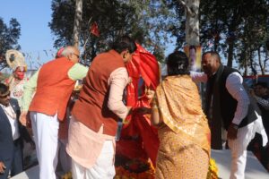 शहडोल 08 फरवरी 2026- मुख्यमंत्री डॉ. मोहन यादव ने शहडोल जिले के ब्यौहारी विधानसभा क्षेत्र की ग्राम गंधिया में माता शबरी की प्रतिमा का अनावरण किया।मुख्यमंत्री ने कहा कि हम सब माता शबरी के भक्ति के गौरवशाली इतिहास को आगे बढ़ाएंगे। गंधिया ग्राम में भी भगवान के पावन चरण पड़े और उन्होंने माता शबरी को दर्शन दिए। हमारी सरकार सनातन परंपरा का सम्मान करती है। हम विरासत से विकास की राह प्रसस्त कर रहे हैं। समारोह में 767 करोड़ रूपए की लागत के निर्माण कार्यों का लोकार्पण और शिलान्याश किया। कहा कि शबरी माता की भक्ति से प्रसन्न होकर भगवान राम ने उन्हें दर्शन दिए और प्रेम के साथ जूठे बेर खाए। भगवान राम ने भीलनी शबरी माता को कौशल्या माता के समान आदर दिया। मुख्यमंत्री ने कहा कि भगवान ने शहडोल, ब्यौहारी और जयसिंहनगर क्षेत्र को अनुपम प्राकृतिक सौदर्य का उपहार दिया है।